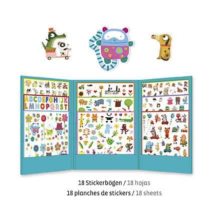 Fazer atividades criativas com os mais pequenos é divertido para todos! Pontos positivos: uma vasta coleção de autocolantes com uma infinidade de tamanhos e cores. 3-6 anos. Caixa: 21 x 31 x 1 cm. Inclui 1000 autocolantes (18 folhas)