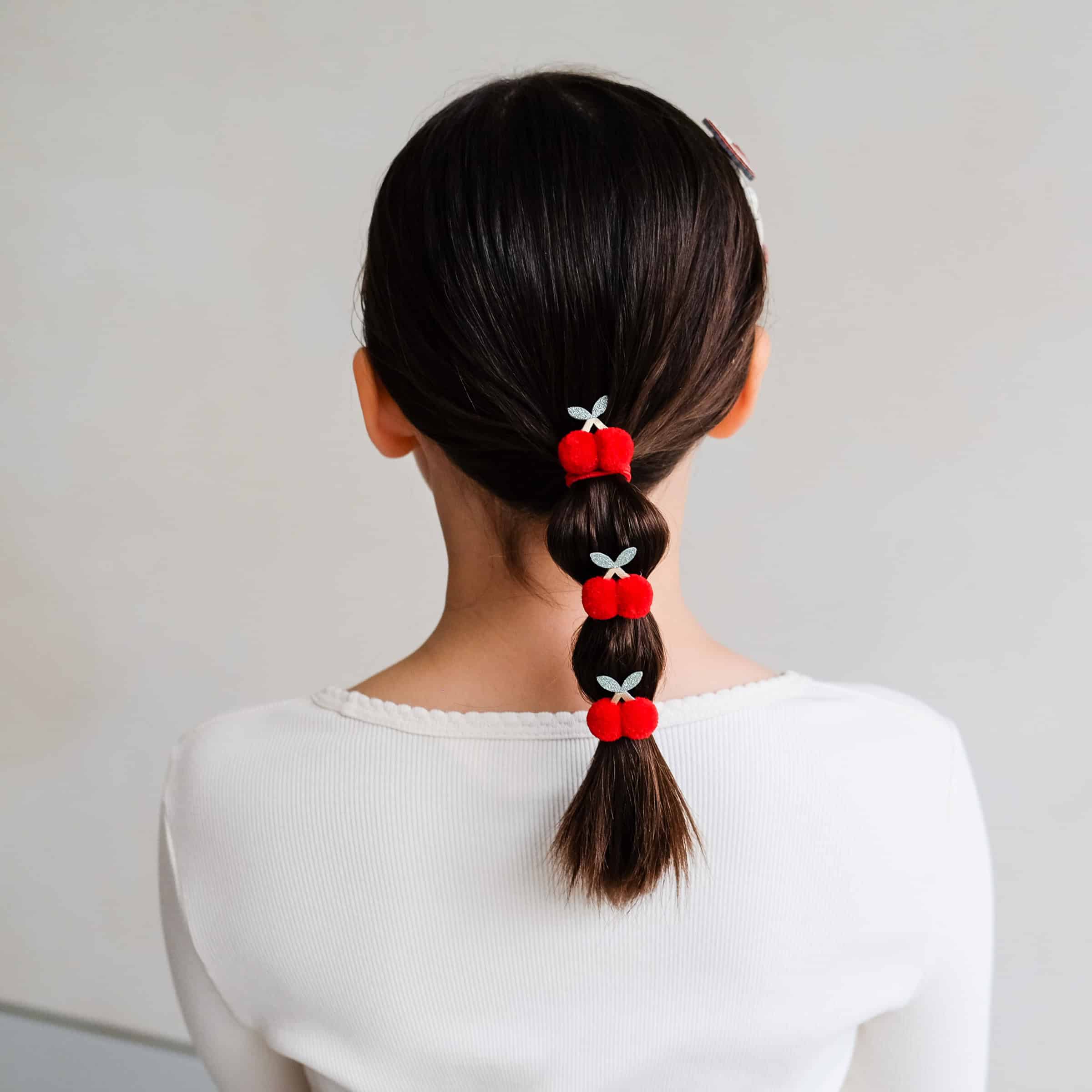 Dê um toque divertido e frutado ao penteado delas com estes adoráveis elásticos de cabelo de cereja, cada um finalizado com um par de cerejas de pompom vermelhas super macias para um toque alegre e vibrante!