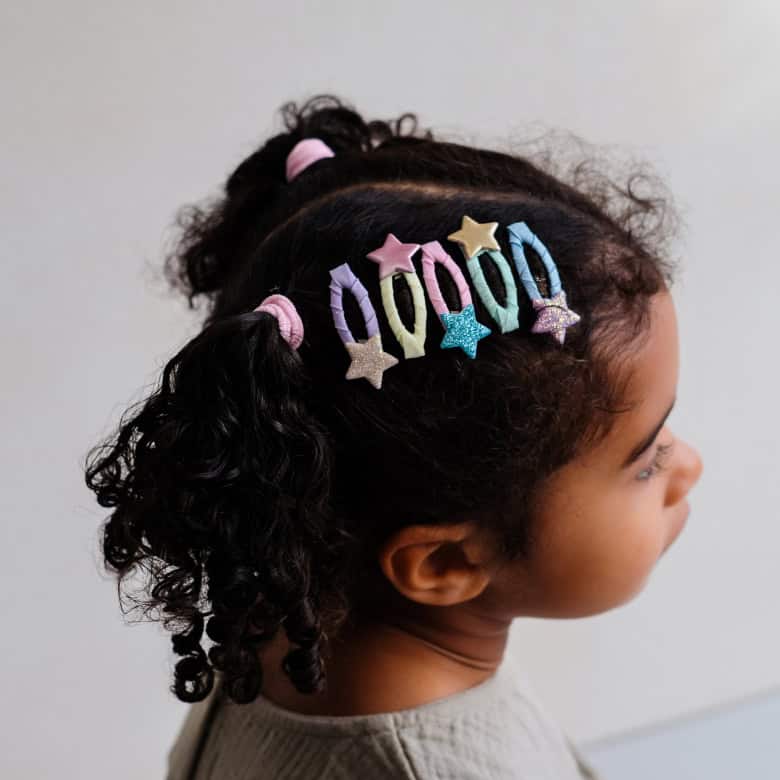 Cinco mini ganchos de cabelo em formato de estrela, delicadas e brilhantes – perfeitas para dar um toque divertido de cor pastel a qualquer penteado!