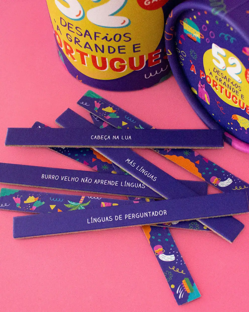 O Jogo “52 Desafios à Grande e à Portuguesa” do The Happy Gang explora expressões portuguesas de forma divertida. Com 52 cartões ilustrados pela Ana Seixas, este jogo incentiva a criatividade através de desenhos ou mímica. Perfeito para famílias e amigos, proporciona risadas e memórias incríveis.