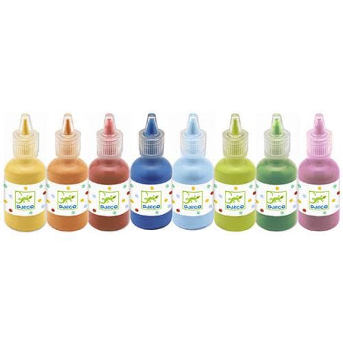 Conjunto de 8 frascos de guache, uma tinta em frasco lavável e prático para crianças.
