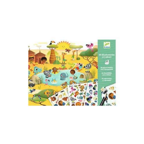 Decalques temáticos para crianças de 4 a 8 anos. Exploração e aprendizado sobre savana, deserto e Polo Norte. Desenvolve habilidades motoras e criatividade.