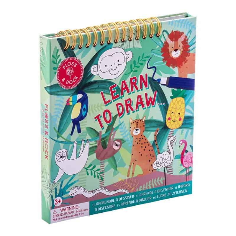 Ao abrir o livro e encontrará 8 páginas grossas e brilhantes, 3 canetas de cor de apagamento a seco com apagadores e uma seção para desenhar e colorir para calcar a imagem. Cada página tem um guia de 3 passos sobre como desenhar sua obra-prima.
