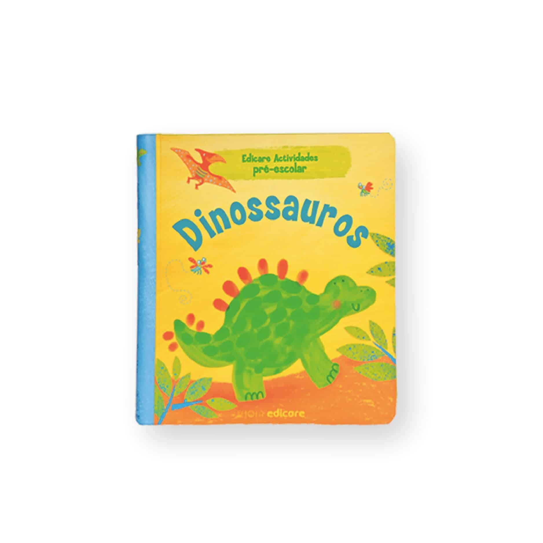 Livro de atividades pré-escolar sobre dinossauros. Desenhar, pintar, recortar e colar. Desenvolve a motricidade fina e concentração com diversão e segurança.