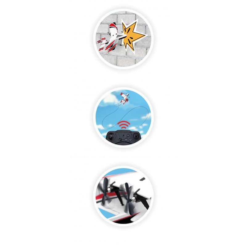 Um avião de controle remoto fácil de pilotar, para uso interno e externo.