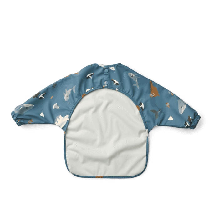 Este babete é perfeito para proteger as roupas do seu filho durante as primeiras papas.Impermeável, com mangas e um bolso prático, oferece máxima proteção e conforto.Além de ser fácil de lavar, o tecido leve garante que seja super confortável para o bebé. Dimensões: De uma extremidade a outra 82cm; C 43cm; Composição: 100% poliéster reciclado. Instruções de lavagem: Lavar na máquina a 30 °C; Não usar na máquina de secar; Não lavar a seco; Não passar a ferro; Lavar com cores semelhantes.