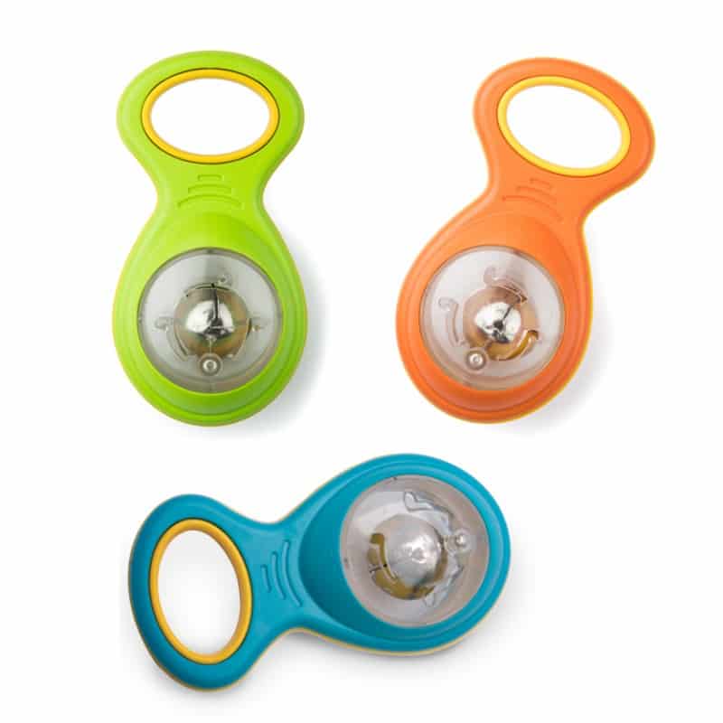 Umas divertidas Baby Maracas com caras de animais texturizadas. A sua pega redonda é flexível e fácil de segurar e agitar.Vendido à unidade e cor aleatória.