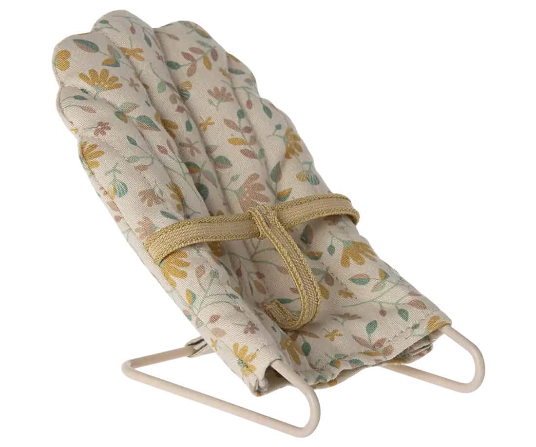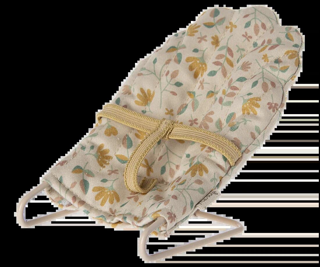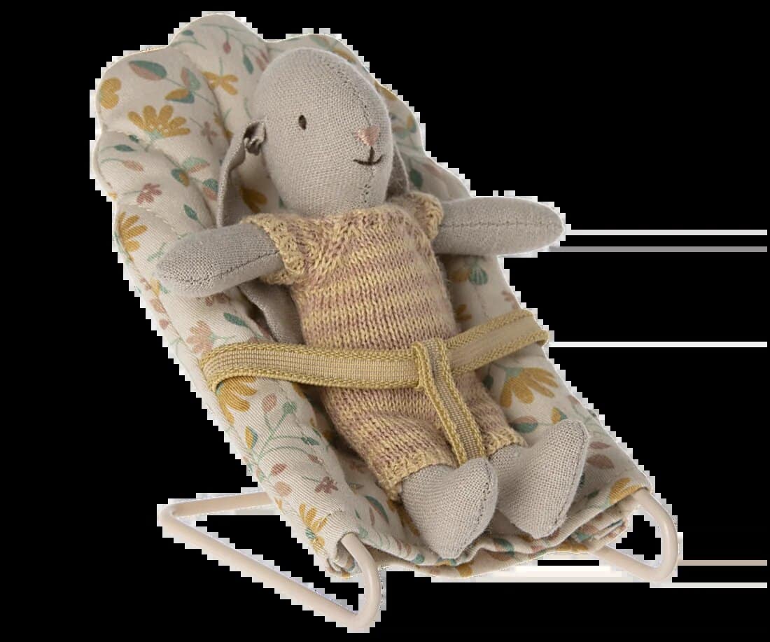 Com esta babá fica fácil colocar seus amiguinhos para dormir. A base é feita de metal e coberta pelo mais lindo tecido. A cadeira cabe perfeitamente em coelhos e coelhinhos de tamanho micro e Teddy Baby.