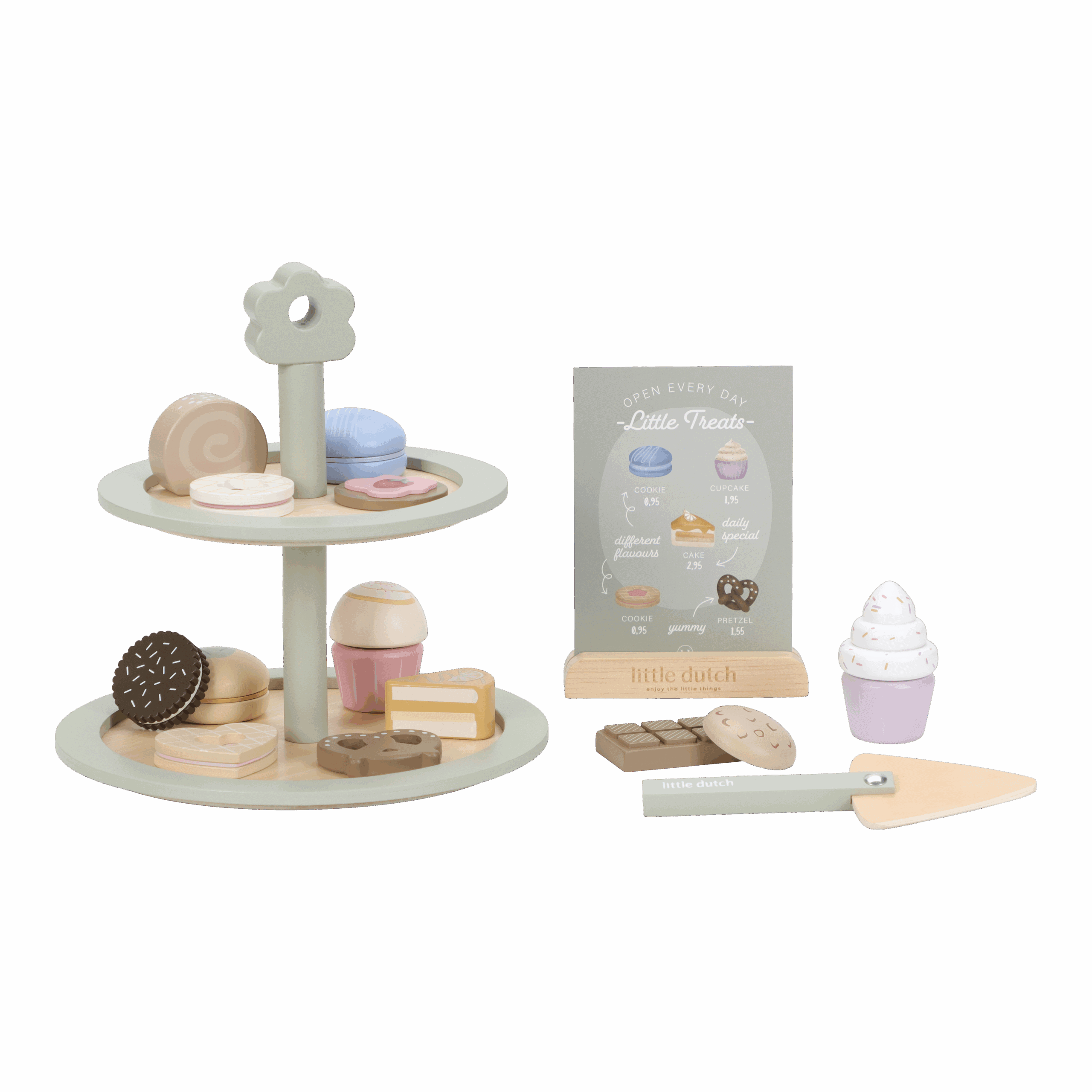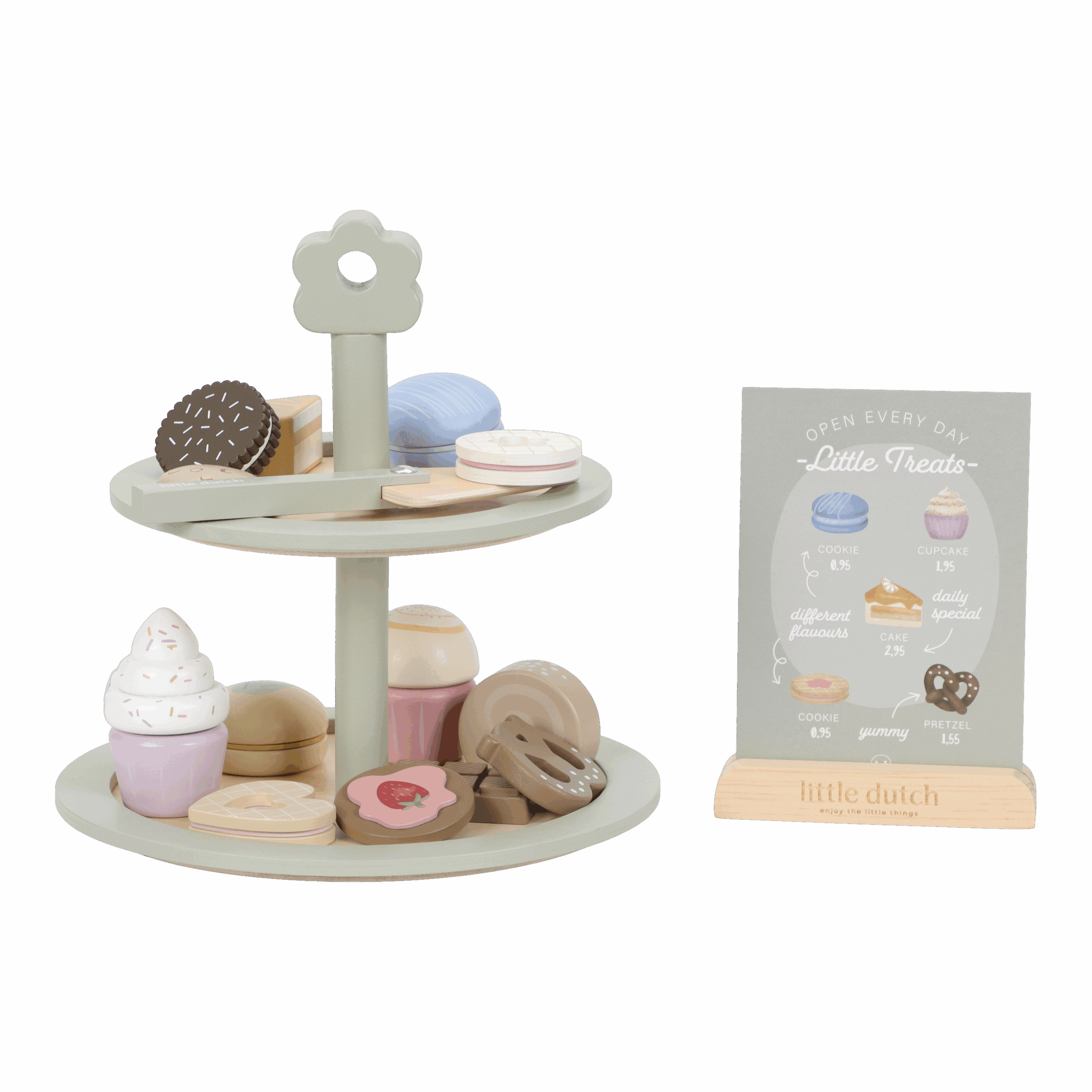om este lindo suporte de madeira em camadas, repleto de deliciosos doces, as crianças podem servir o chá da tarde mais lindo.