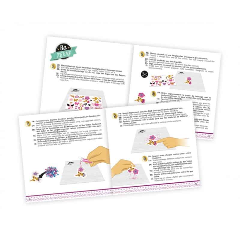 Escolhe o desenho, decora com as mini-miçangas e cola a tatuagem na pele para um visual moderno!
