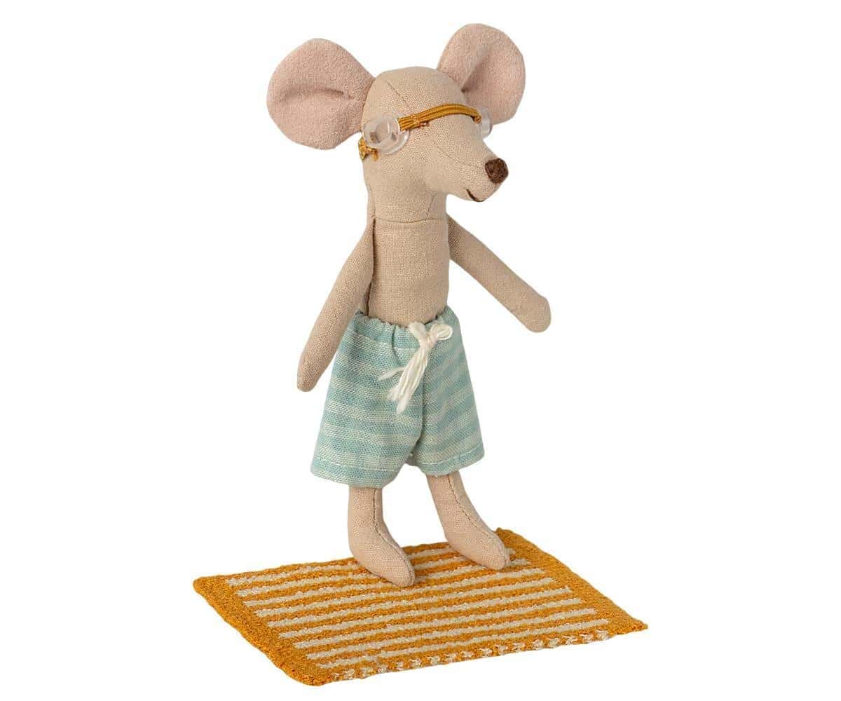 Este conjunto inclui todos os acessórios essenciais para um dia divertido na praia: calções, óculos de proteção e uma toalha.