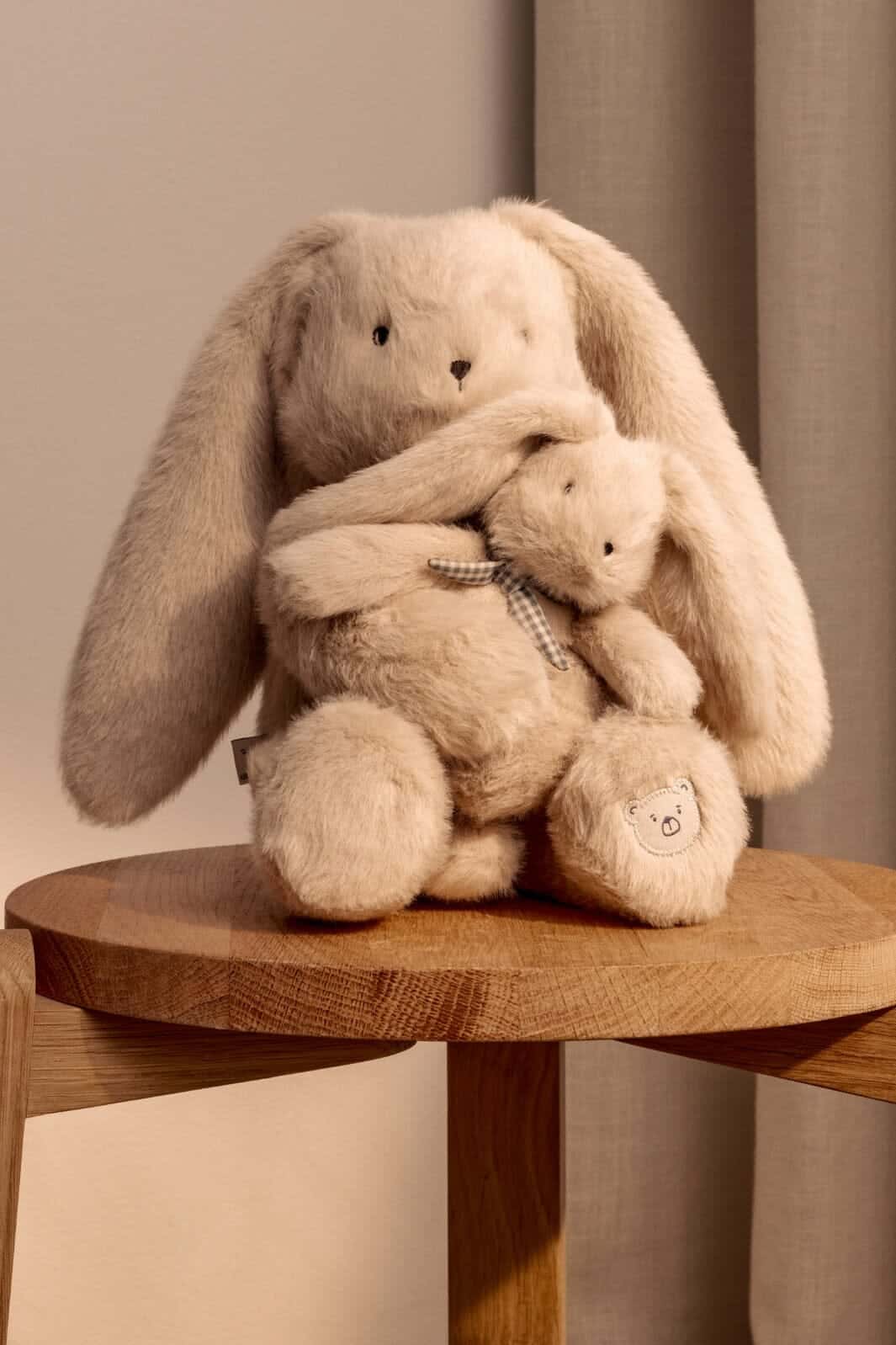 Este adorável conjunto de ursinhos de peluche, é o presente perfeito para um nascimento ou batizado. Confeccionados em poliéster reciclado supermacio e certificado pela GRS, os coelhos mamãe e bebê oferecem conforto e acompanham seu filho em suas primeiras aventuras e momentos de tranquilidade. I