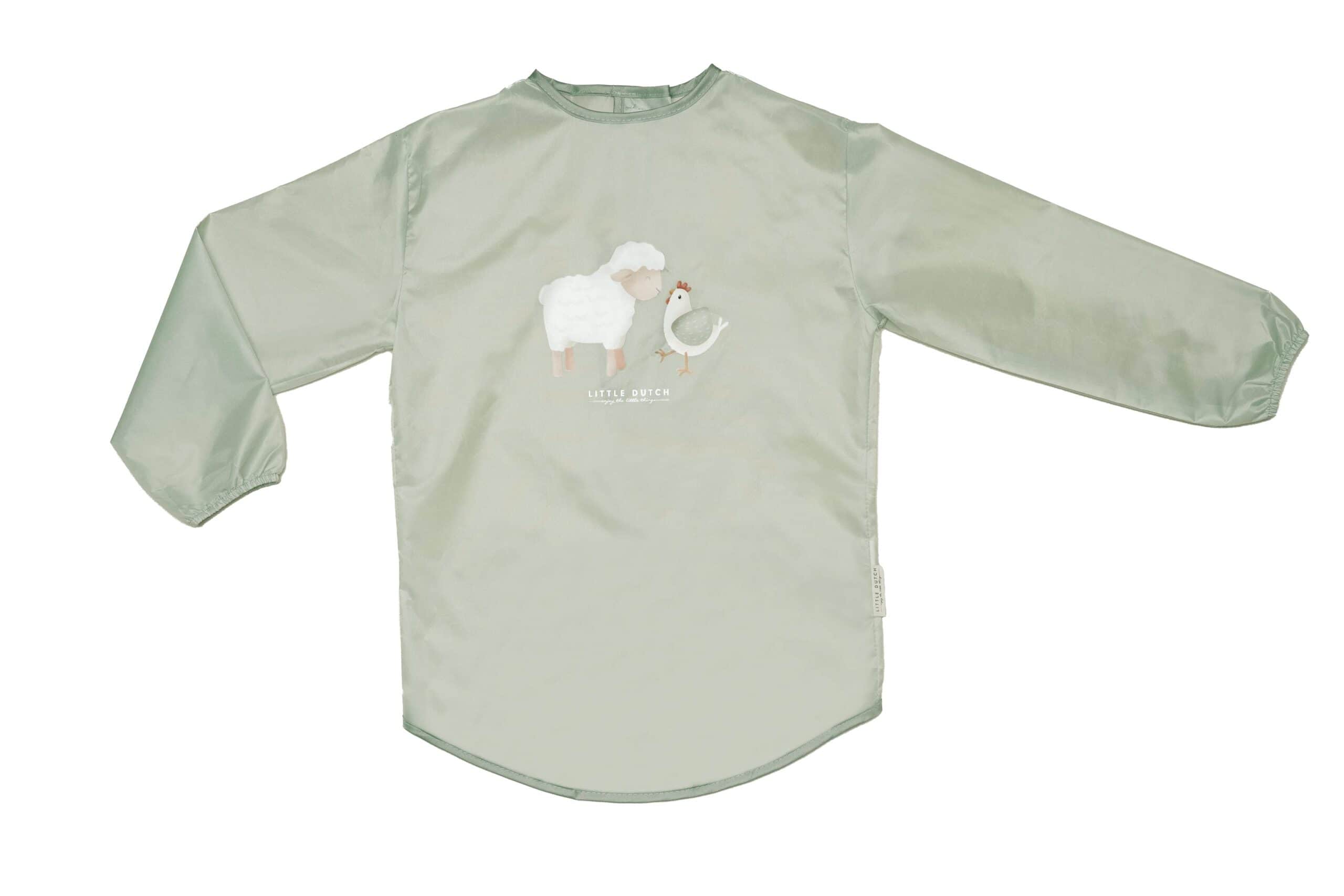 Este Bib manterá as roupas limpas e secas para que possa se concentrar na criação das mais belas artes e ofícios. Este avental impermeável coberto com o desenho da fazenda Little Farm não limitará a criatividade do seu pequeno artista. É fácil de colocar e tirar com fecho de velcro nas costas. As mangas com elásticos ao redor dos pulsos evitam que os fluidos pinguem ainda mais. Não se preocupe com qualquer bagunça ou manchas.
