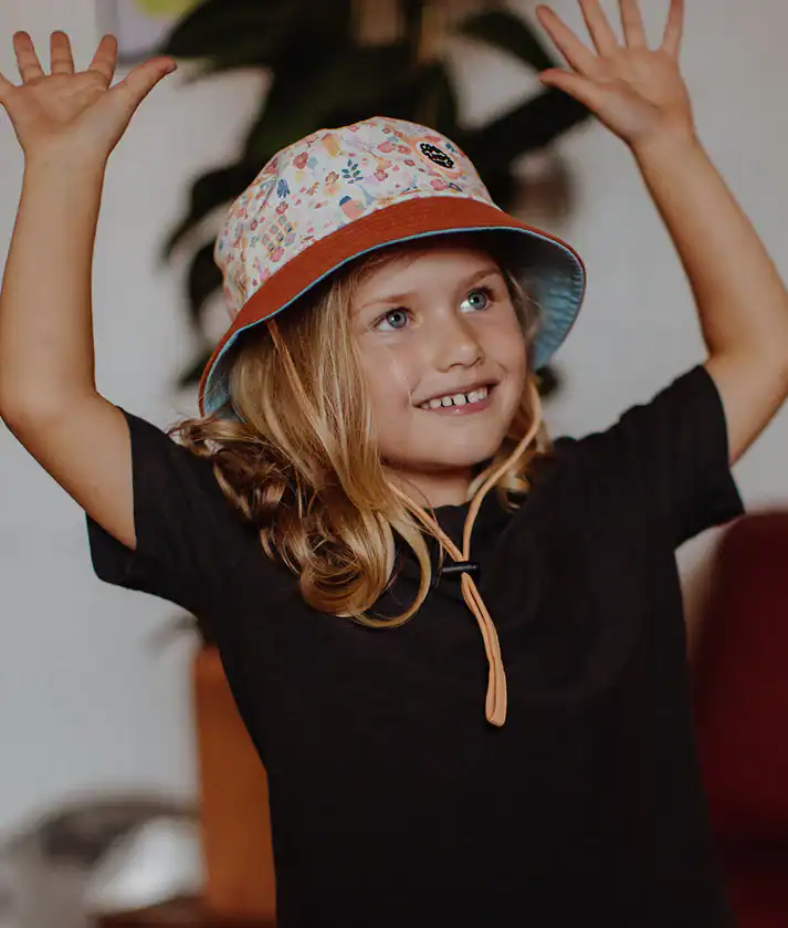 Cada chapéu é fabricado com materiais eco-responsáveis, com certificação OEKO-TEX® e muitas vezes com algodão biológico, o que garante leveza, suavidade e respeito pela pele sensível das crianças. A presença de um cordão ajustável em todos os tamanhos assegura que o chapéu se mantém no lugar durante brincadeiras ao ar livre, caminhadas ou dias de praia.