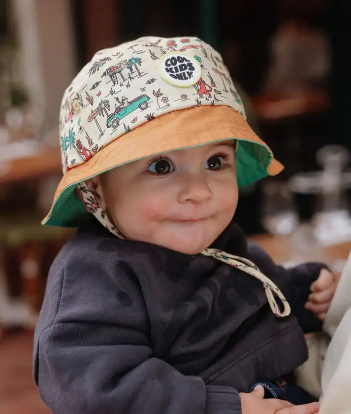 Cada chapéu é fabricado com materiais eco-responsáveis, com certificação OEKO-TEX® e muitas vezes com algodão biológico, o que garante leveza, suavidade e respeito pela pele sensível das crianças. A presença de um cordão ajustável em todos os tamanhos assegura que o chapéu se mantém no lugar durante brincadeiras ao ar livre, caminhadas ou dias de praia.
