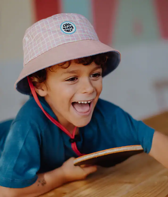 Cada chapéu é fabricado com materiais eco-responsáveis, com certificação OEKO-TEX® e muitas vezes com algodão biológico, o que garante leveza, suavidade e respeito pela pele sensível das crianças. A presença de um cordão ajustável em todos os tamanhos assegura que o chapéu se mantém no lugar durante brincadeiras ao ar livre, caminhadas ou dias de praia.