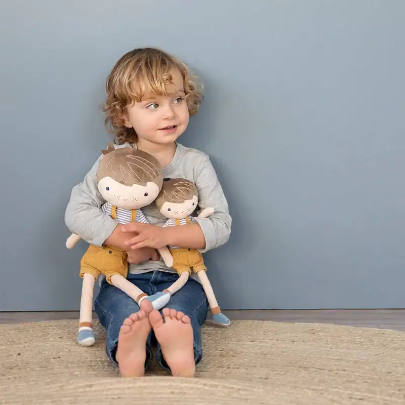 O Jim é um lindo boneco de pano que anda sempre tudo pipi com o seu macacão macio. É tão macio e adorável que só dá vontade de se abraçar.