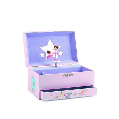 Caixa de jóias musical! Gira a manivela, abre a caixa e ela ganha vida! Em madeira, veludo, plástico e metal. Indicado para + de 4 anos.A música dura aproximadamente 2:30 minutos. Música “Invitation to the Dance”, de Carl Maria von Weber