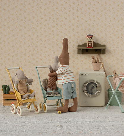 Na charmosa cor Yellow, o carrinho traz um toque alegre e sofisticado, combinando perfeitamente com os bonecos da linha Micro da Maileg.