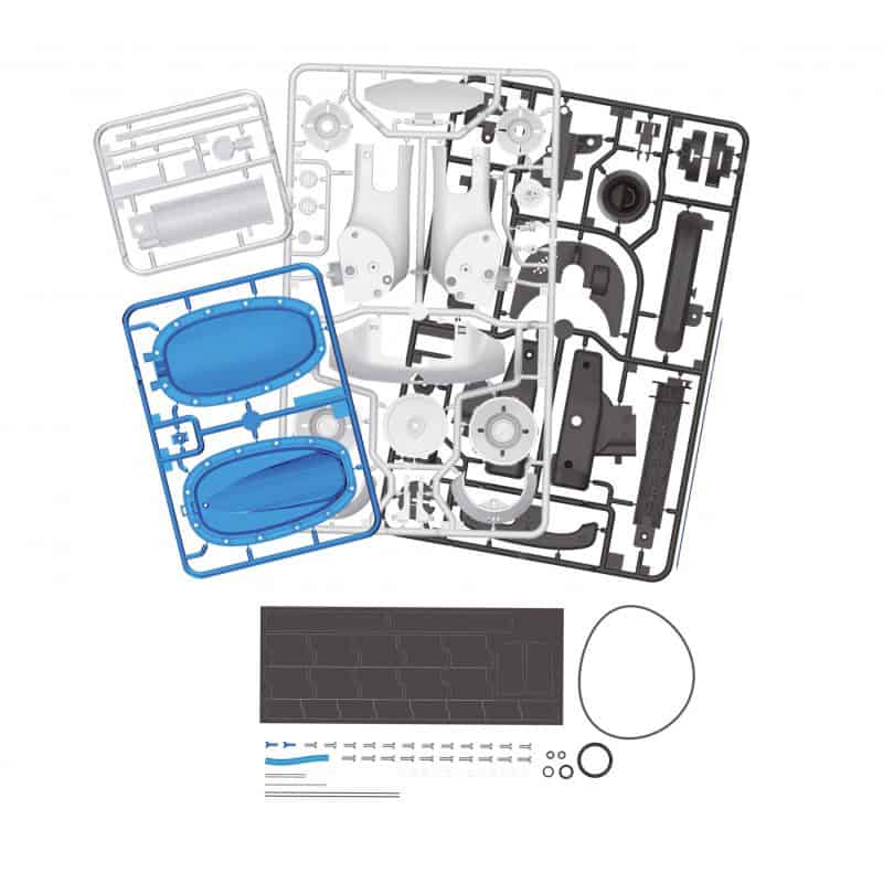 Reúna as peças e construa um carro de corrida movido a ar comprimido.