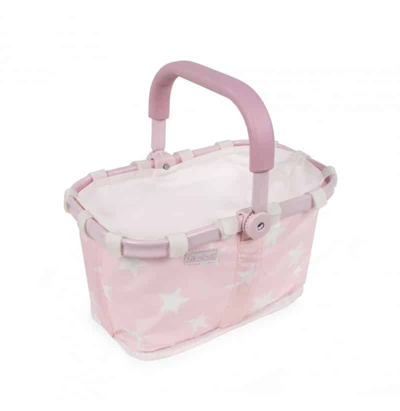 Este prático cesto de compras Carlota com estrelas tem uma alça rígida e dobrável.
