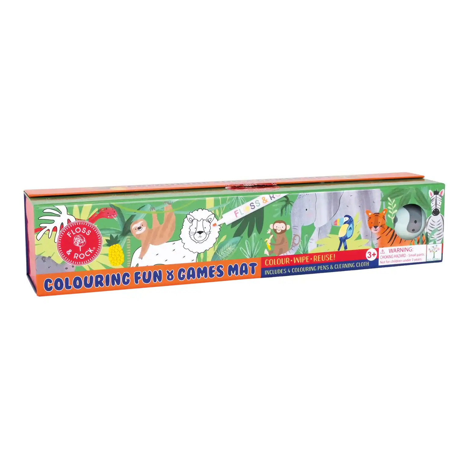 Perfeito para viajar. Basta desenrolar o tapete de silicone reversível para pintar, ligar pontos, fazer um labirinto e jogar o jogo da velha.