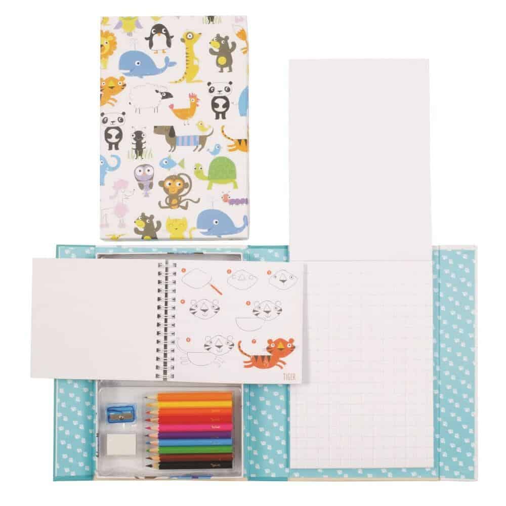 Conjunto de desenho infantil Como Desenhar|Animais: livro instrutivo, lápis de cor vibrantes e bloco de desenho. Estimula a criatividade e aprendizagem divertida!