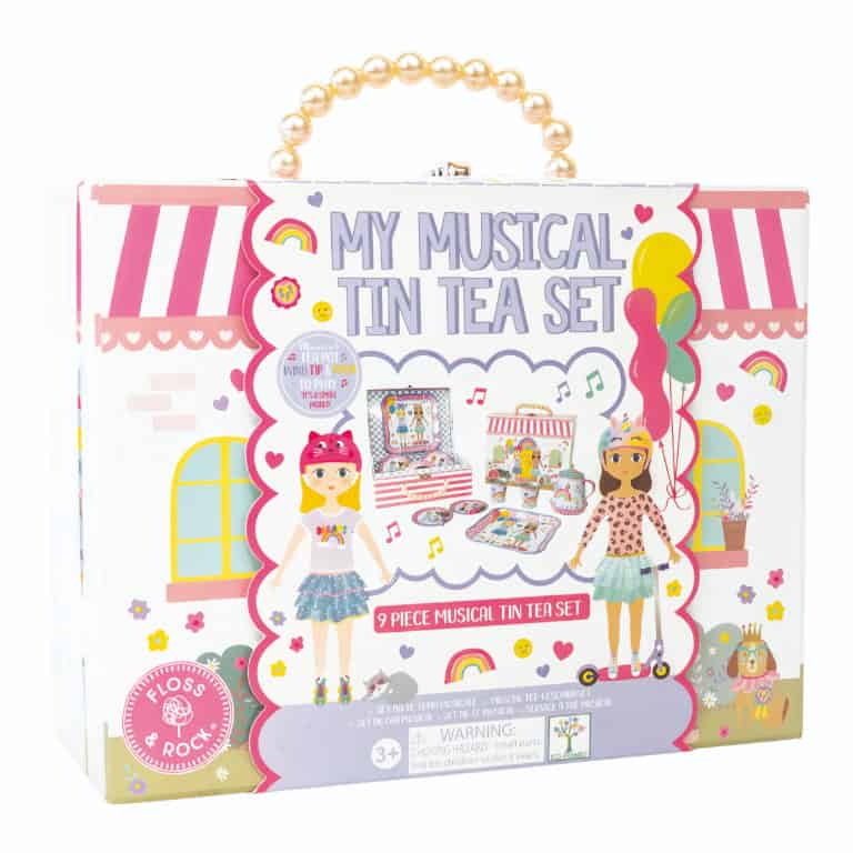 Lindo conjunto de chá musical Best Friends, com 9 peças, inclui um bule e tampa, 2 chávenas, 2 pratos e 1 bandeja num lindo estojo reutilizável com uma linda alça de pérola, perfeito para levar para chás com os amigos!