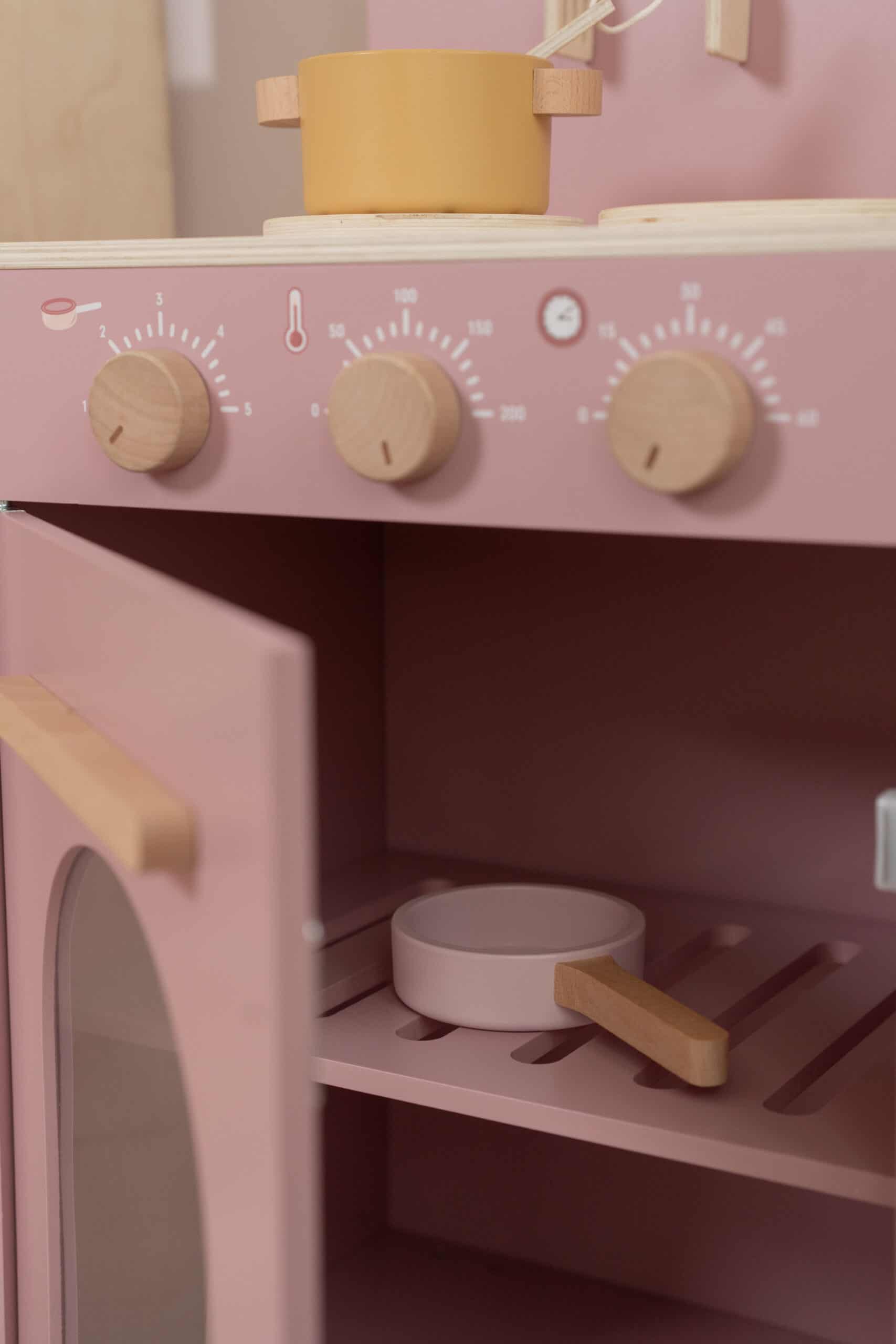 Cozinha cor-de-rosa em madeira as crianças podem mergulhar no mundo da culinária e da pastelaria.