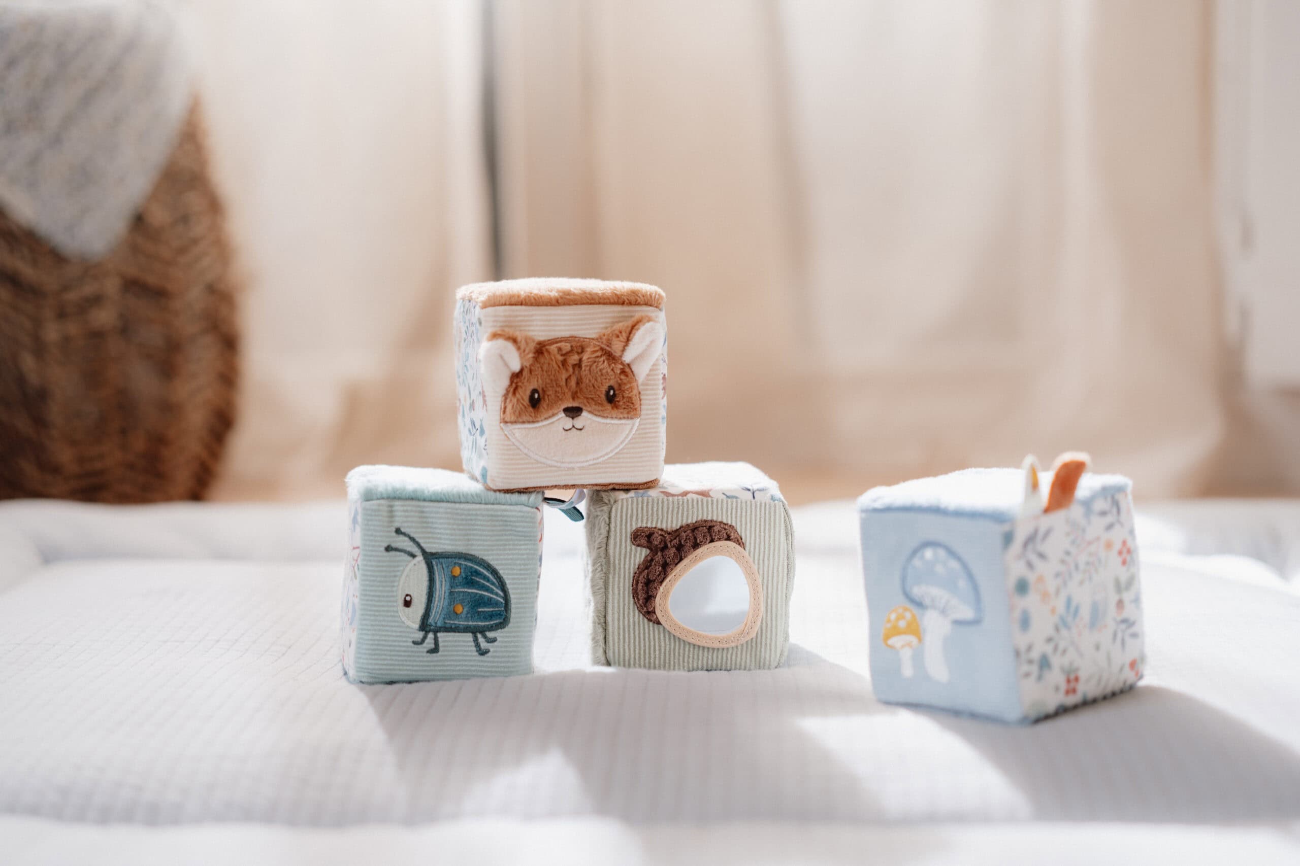 Com diferentes sons, texturas e cores para descobrir, este alegre conjunto de blocos de atividades macios da coleção Amigos da Floresta vai manter o seu pequeno entretido por horas. Além disso, a coordenação motora da criança será estimulada durante a brincadeira.