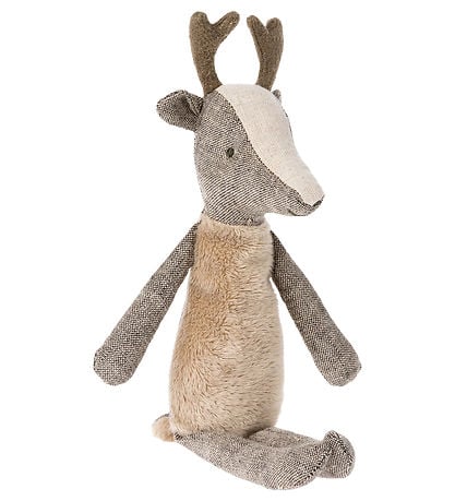 Lindo cervo Maileg cinza com lã macia na barriga. O veado Maileg é o pai da pequena família de veados que vive na casa de gengibre. No fundo, há bolinhas de plástico para que ele possa sentar sozinho.
