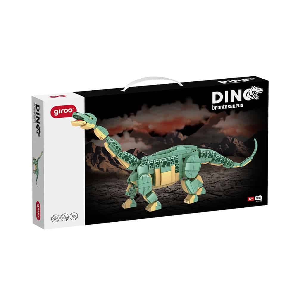 A linha DINO da Giros é inspirada nos detalhes dos principais ícones do universo dos dinossauros. Encaixes perfeitos constituem um brinquedo que pode ser facilmente adaptado a uma criança de 6 anos ou a um adulto. Os encaixes GIROS constituem uma qualidade superior e permitem a construção de um dinossauro com uma robustez assinalável e um detalhe incrível.