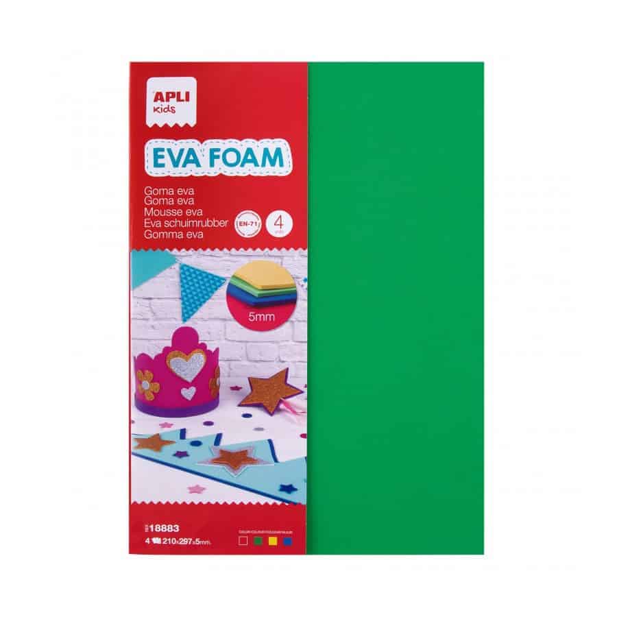 A espuma EVA é um material ideal para artesanato, tanto doméstico quanto escolar. É macia, flexível, fácil de cortar, colar e pintar. Também é impermeável e pode ser moldada a quente.