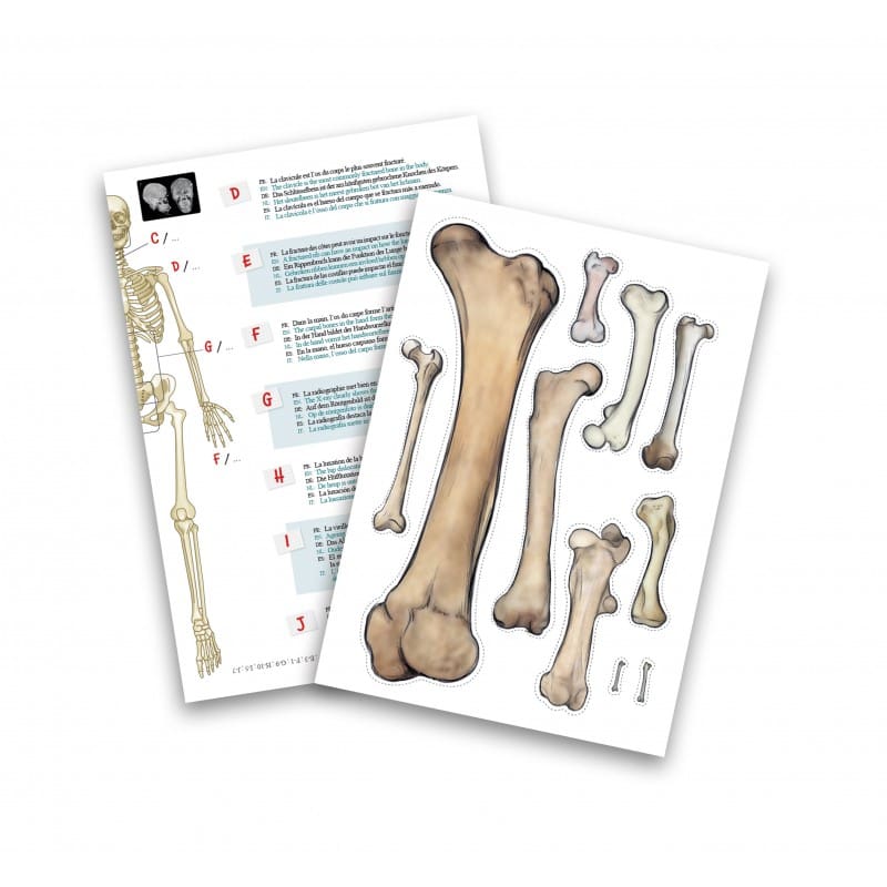 Pode colar etiquetas nos ossos para identificá-los e observar as radiografias incluídas.