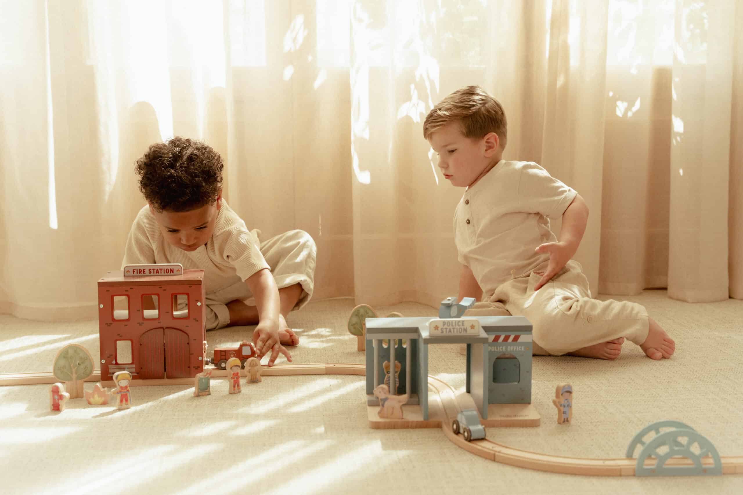 Compatível com pistas de comboio de madeira, esta estação permite criar histórias interactivas e estimular a coordenação motora, criatividade e sentido de justiça das crianças.