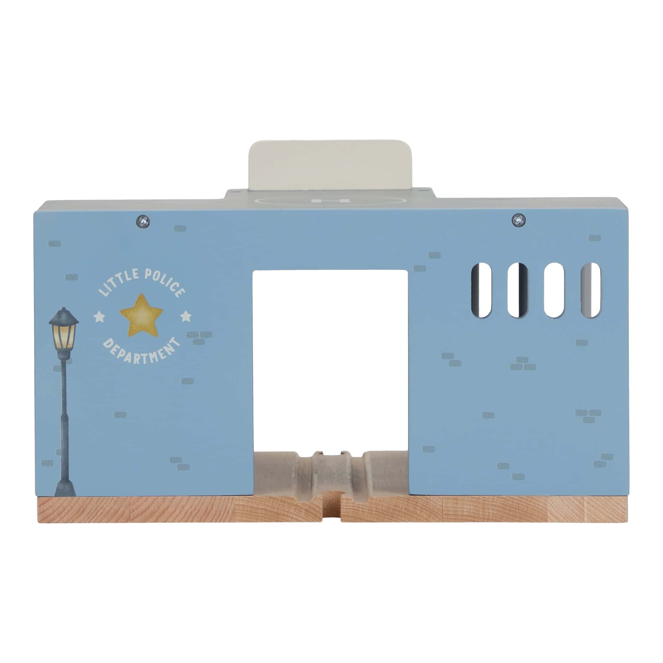A Estação da Polícia em madeira da Little Dutch é o cenário ideal para os pequenos amantes de aventuras e histórias policiais! Este conjunto encantador é feito em madeira resistente e pintado com cores suaves em tons de azul e cinzento, combinando perfeitamente com outros brinquedos da mesma linha. Inclui uma prisão com grades, um escritório da polícia, uma pista de ligação, além de personagens como um polícia, um ladrão, um cão polícia, um carro patrulha e até um helicóptero pousado no telhado. Todos os elementos são ilustrados com detalhes delicados que incentivam o jogo imaginativo e o faz de conta.
