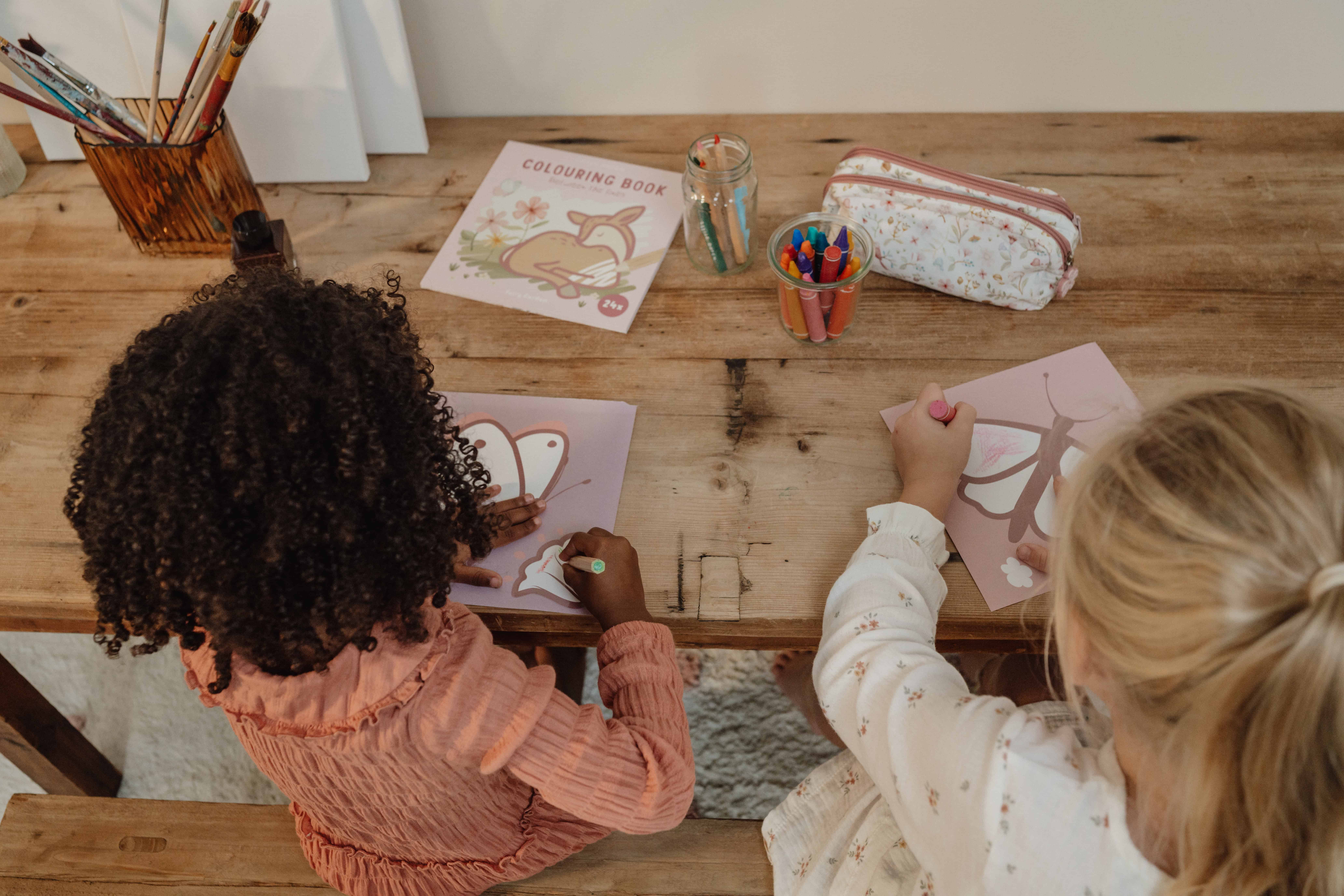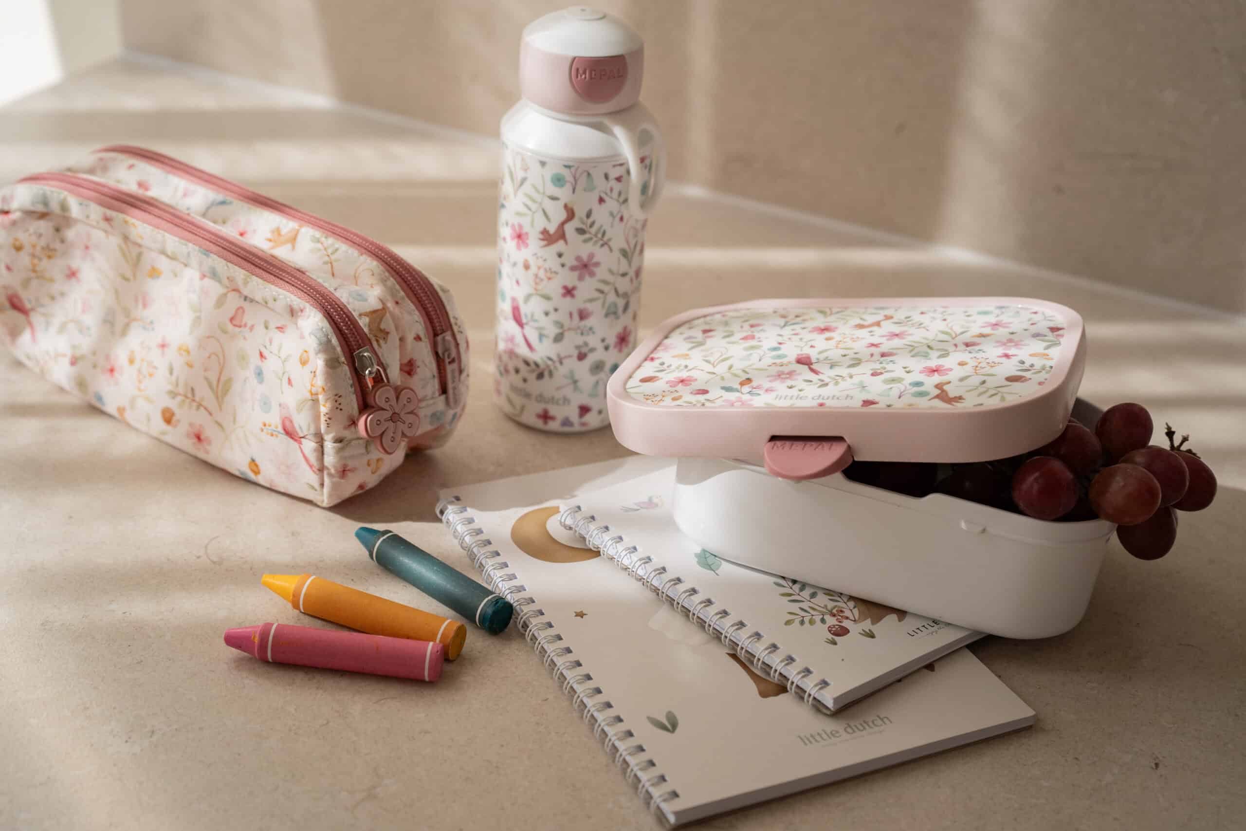 Este estojo é feito de alta qualidade e possui um charmoso fecho com uma flor. O design compacto cabe facilmente na bolsa dos pequenos, enquanto o interior espaçoso garante que eles possam guardar tudo com cuidado.