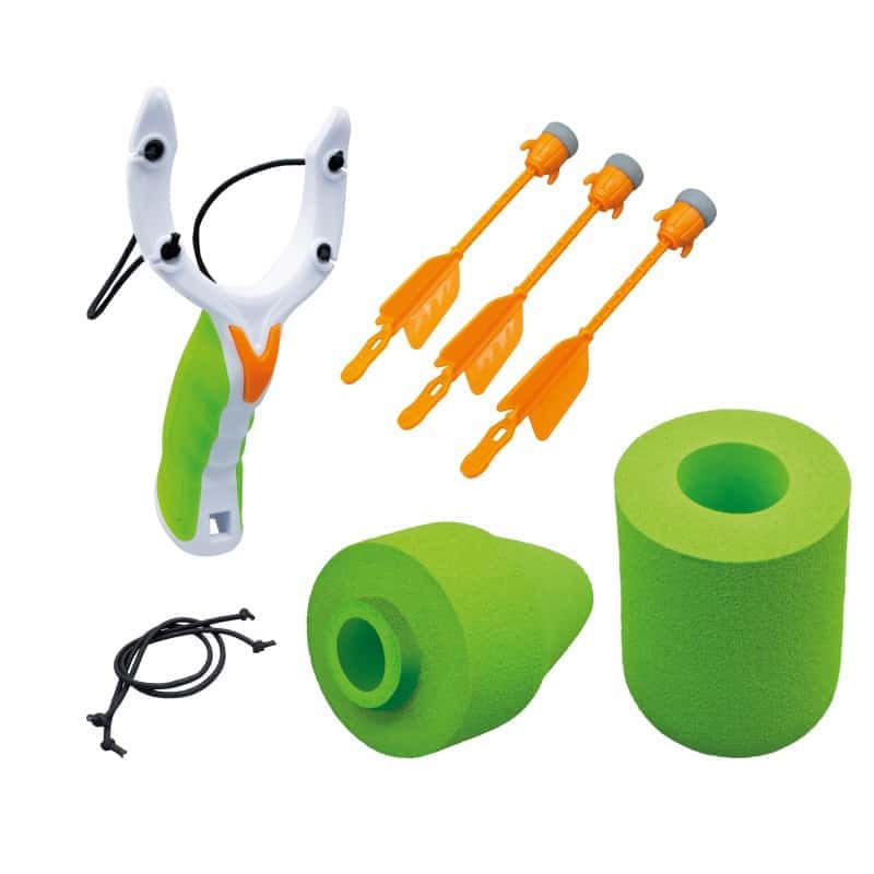 Um estilingue para ajudá-lo a sobreviver na floresta.Design portátil leve.A criança atira uma garrafa de espuma que “explode” ao ser atingida.Inclui: 3 dardos seguros e elásticos sobressalentes.Alcance: 20m.
