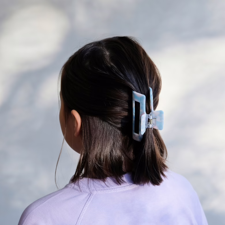 Um novo gancho/mola num lindo tom de azul, perfeito para prender um penteado total ou prender uma mecha mais grossa de cabelo para trásnFeito de acetato de celulose, um material ecologicamente correto derivado de algodão natural e fibras de madeira