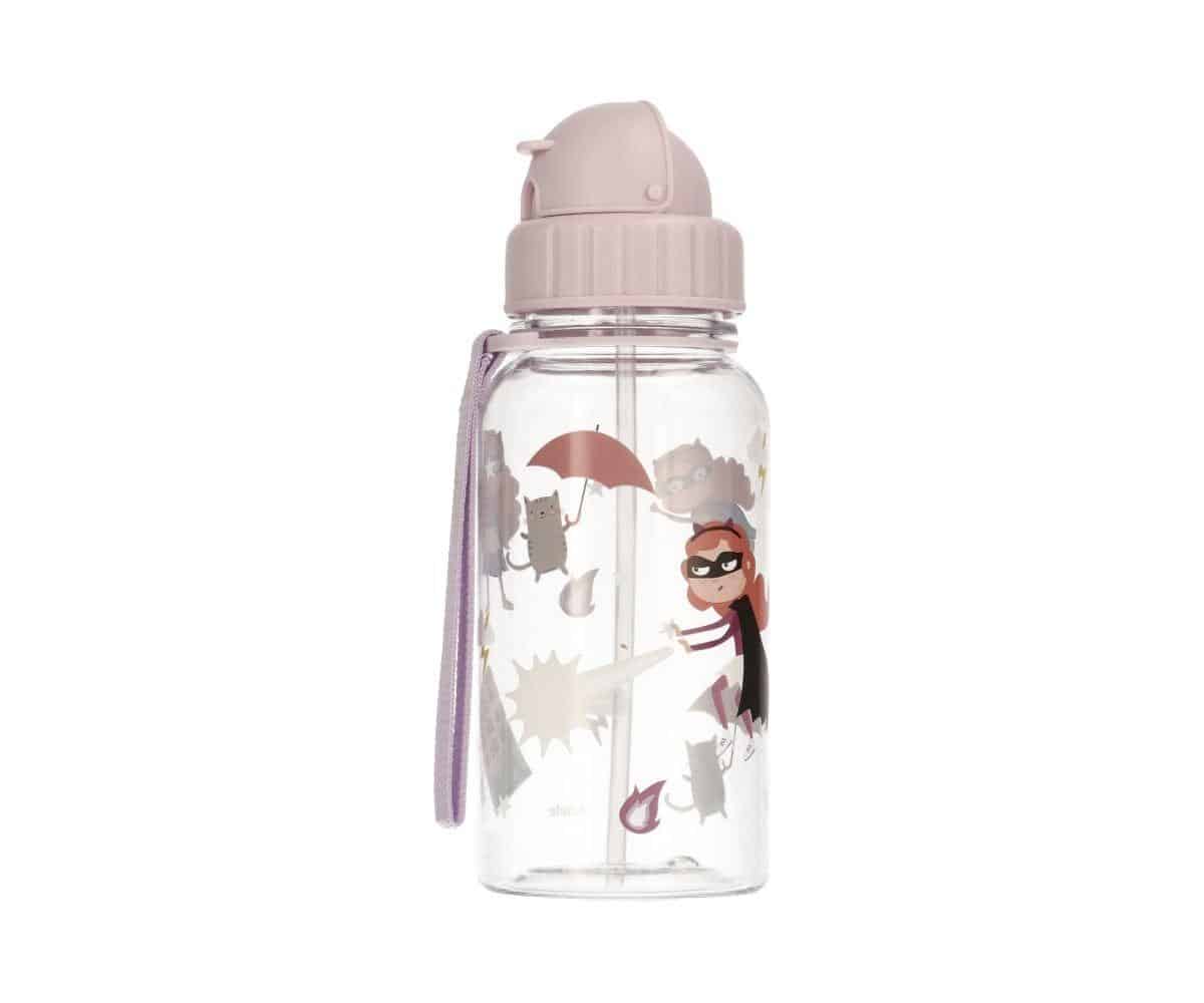 Garrafa Fantastic Girl de Tritan, 500ml, com canudo de silicone dobrável e livre de BPA. Perfeita para crianças, segura, resistente e lavável na máquina.