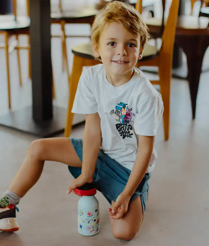 As garrafas térmicas Hello Hossy® para crianças foram especialmente concebidas a pensar nos mais pequenos. Em particular, possuem uma pega especial para crianças. Estas garrafas térmicas para crianças combinam na perfeição com as nossas mochilas (com bolso para garrafa de água).