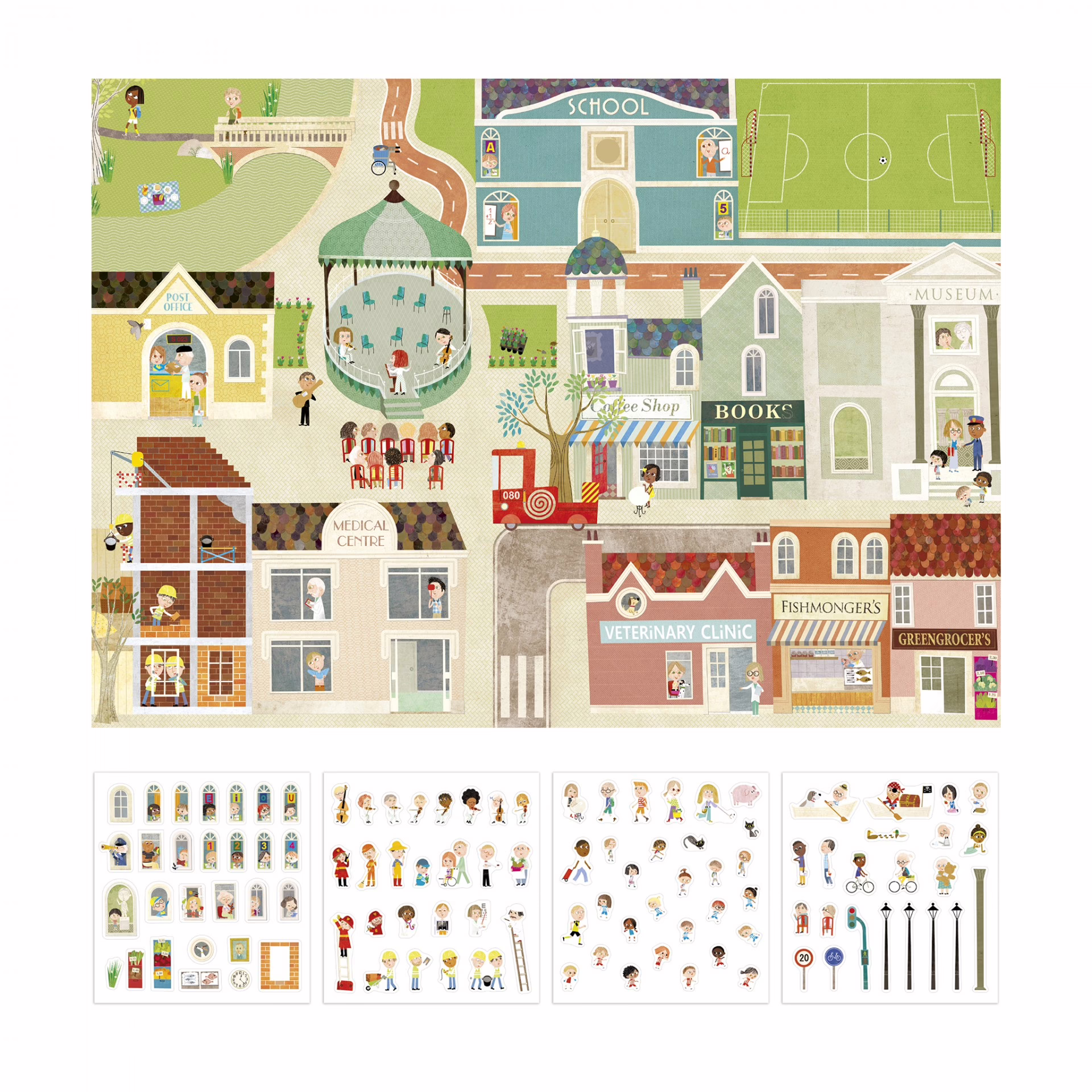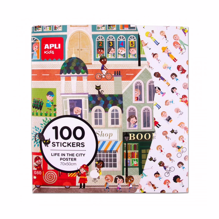 Crie um mundo de aventuras com o Giant Poster de Cidade! Inclui 100 autocolantes para despertar a imaginação dos seus filhos.