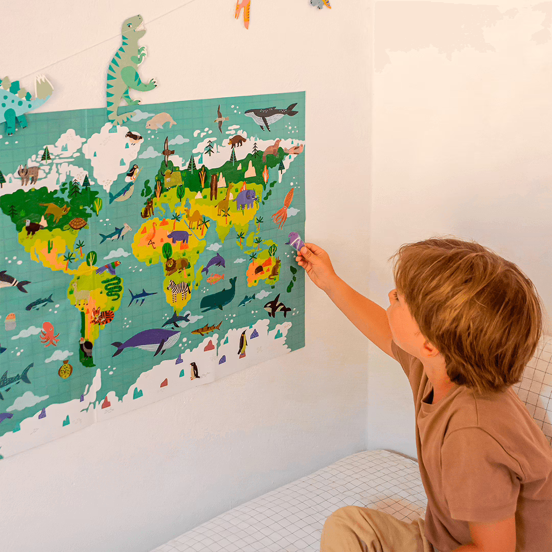 Transforme a decoração do seu espaço com o Giant Poster! Inclui 100 stickers do Mapa Mundo.