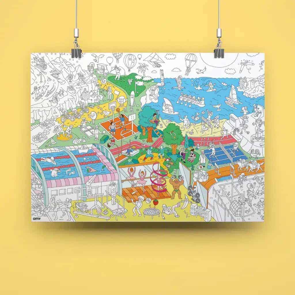 Descubra o mundo dos desportoes com a OMY. Lembre-se de colorir até a última reta para chegar ao topo do pódio!