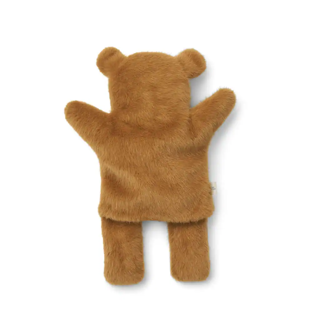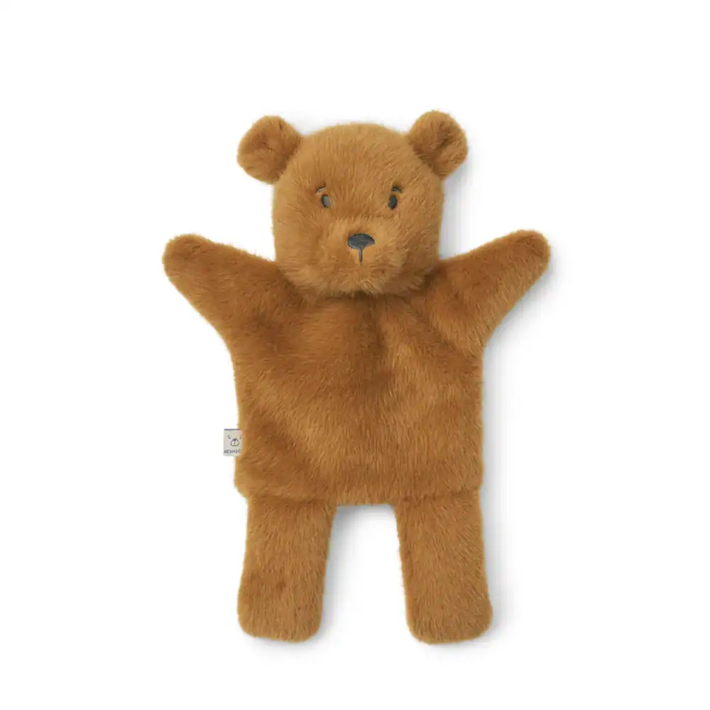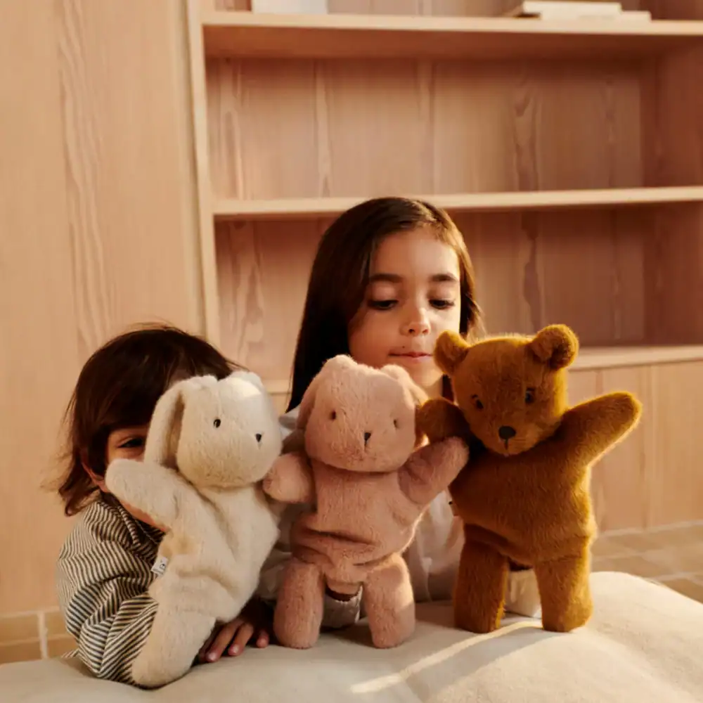 Fantoche de peluche em formato de ursinho, feito de poliéster reciclado ultramacio e certificado pela GRS. Um acessório divertido e macio para brincar com seu pequeno, permitindo que ele faça teatro e dance com amigos e familiares.
