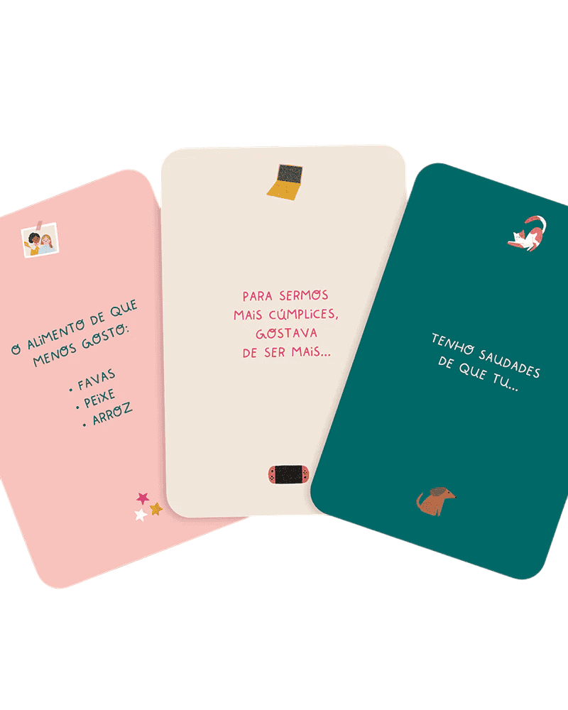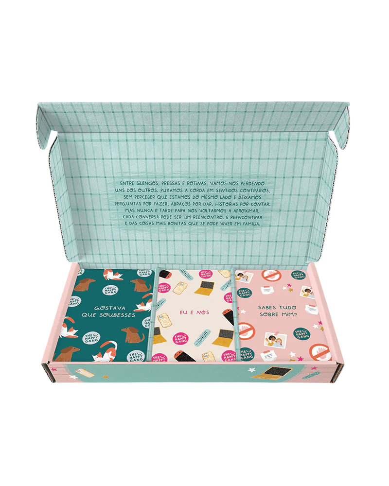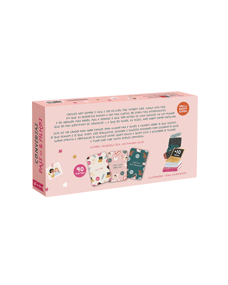 Este kit foi criado para abrir espaço, para ajudar pais e filhos a falarem sobre o que sentem, o que pensam e o que vivem. São perguntas, desafios e quizzes pensados para quebrar o gelo, gerar empatia e fortalecer o vínculo entre quem educa e quem está a descobrir o mundo.