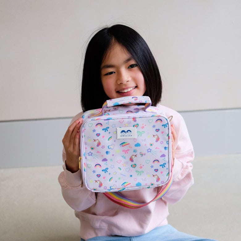 A lancheira super popular da Mimi e da Lula está de volta — agora com um estampado de unicórnio totalmente encantador! Com uma alça em tons pastel de arco-íris e um forro térmico de alumínio fácil de limpar para manter os alimentos frescos por mais tempo, é tão prática quanto bonita!