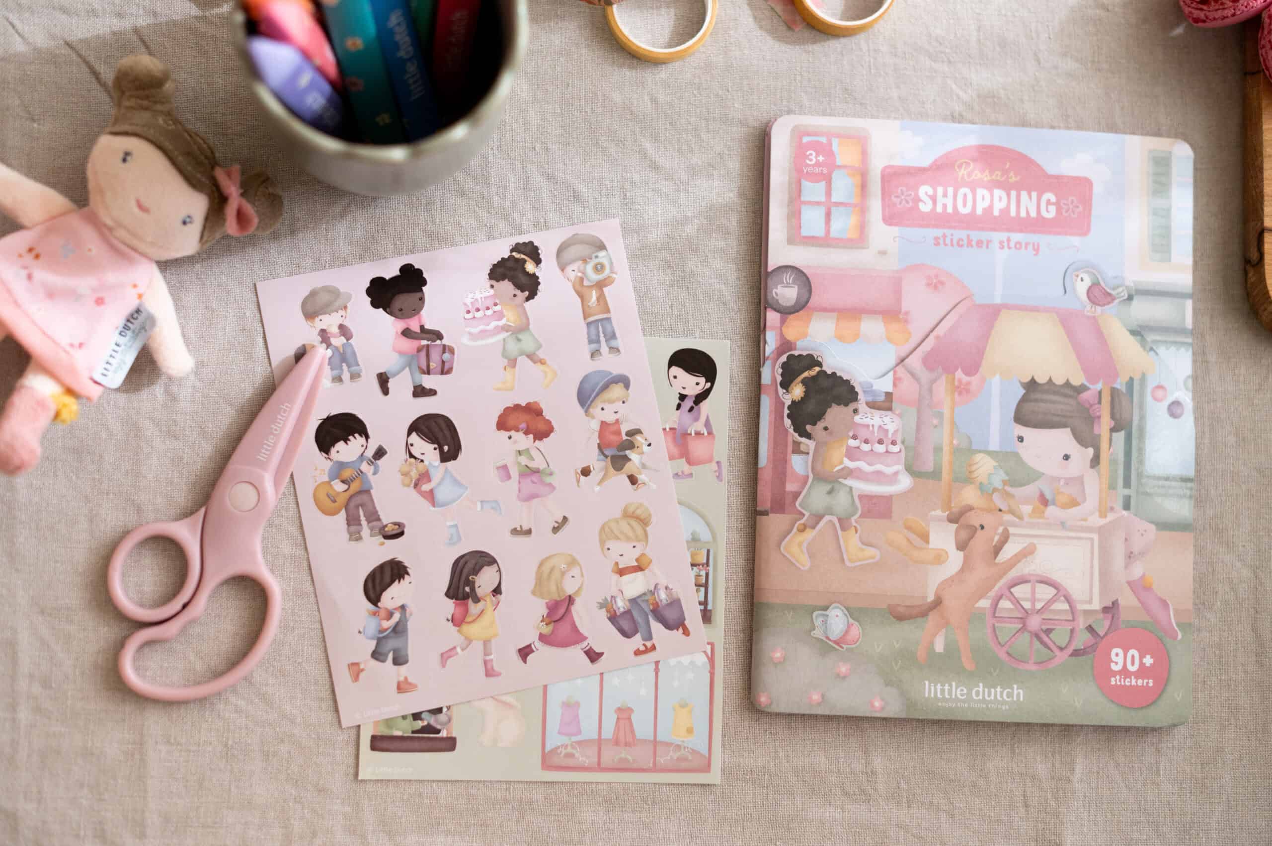 Livro de Autocolantes – Little Dutch – Rosa & Friends Shopping – Sticker Story