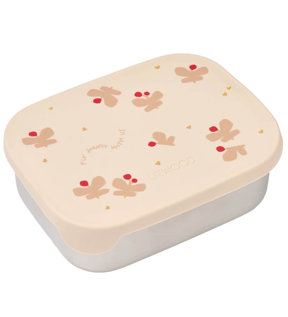 A lancheira Liewood é feita de aço inoxidável, o que a torna resistente e impede que ela se deforme, mantendo o seu formato. A lancheira possui uma tampa de silicone, facilitando a abertura e o fecho. Internamente, é dividida em dois compartimentos pequenos e um grande.