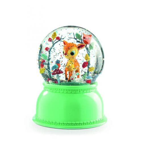 Descubra as luzes noturnas, que oferecem uma iluminação suave e delicada para fazer companhia aos mais pequenos e tranquilizá-los. Este globo, em plástico rígido, tem um mecanismo que faz os flocos girarem e difunde cores diferentes.